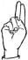 На ћирилици написано ЛАБУДА БАБИЋ састоји се из 11 слова [?]. Исписано ћириличном једноручном азбуком за глувонеме: